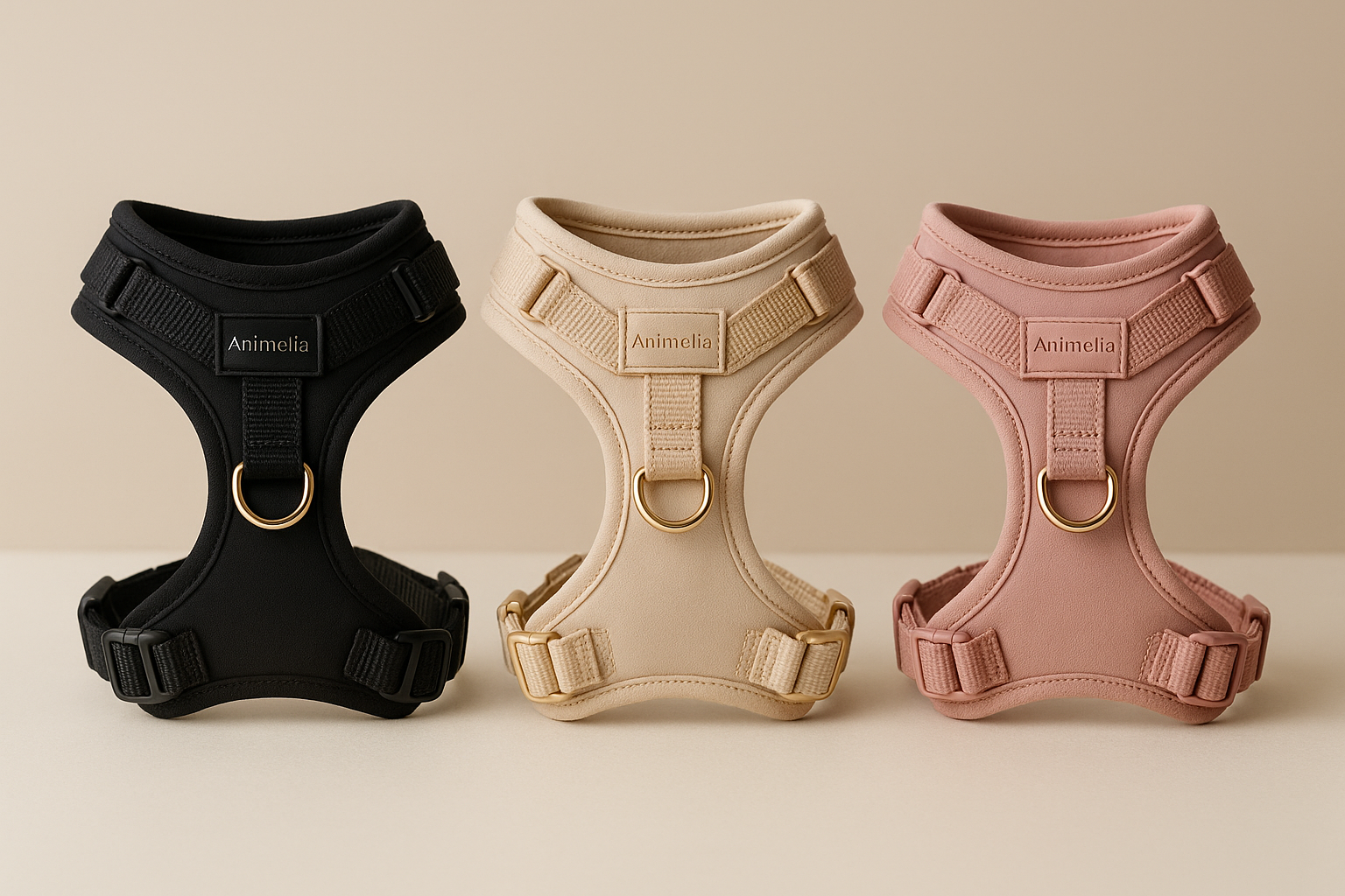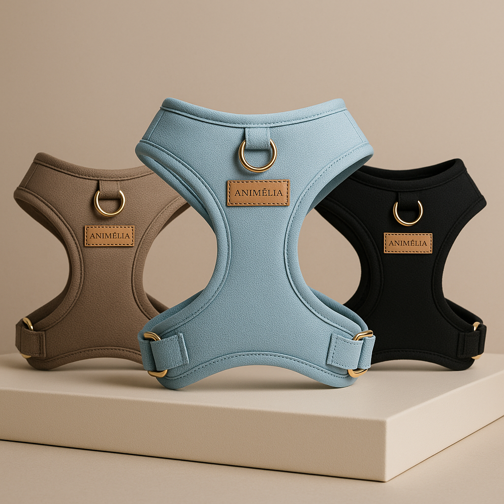 Fabriqué à partir de matériaux premium, doux et résistants, le harnais Stella est orné de boucles dorées, de coutures soignées et de notre étiquette Animélia, symbole d’un style raffiné.